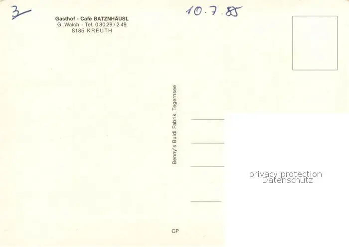 Kreuth_Tegernsee Gasthof Café Baznhaeusl Restaurant Alpen Kreuth Tegernsee postalisch nicht gelaufen 1985 Erhaltung siehe scans [FriedD77] Frierer