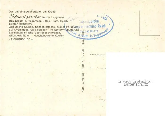 Kreuth_Tegernsee Schwaigeralm in der Langenau Gaststube Kreuth Tegernsee postalisch nicht gelaufen nach 1965 Erhaltung siehe scans [FriedD77] Frierer
