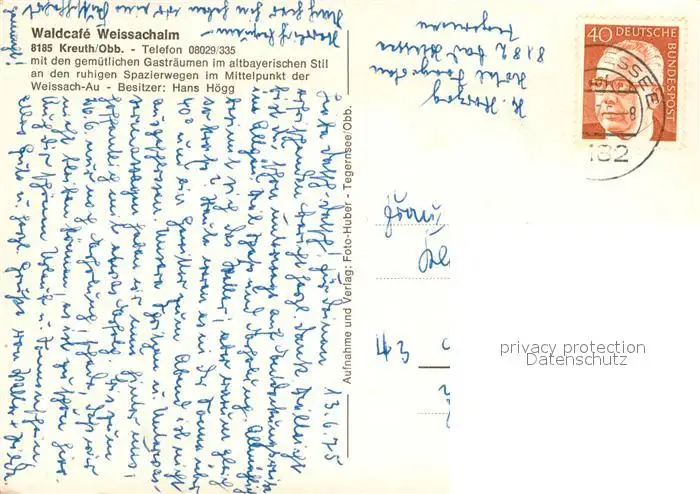 Kreuth Tegernsee Kategorie Alte Ansichtskarten Postkarten bx60021 Kreuth_Tegernsee Waldcafe Weissachalm Kreuth Tegernsee postalisch gelaufen 1975 Erhaltung siehe scans [WerneD78]