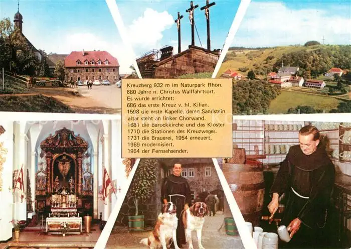 Kreuzberg_Rhoen Kloster Golgatha Kreuz Klosterkirche Pforte Ausschank Priester Bernhardinder Hunde Fliegeraufnahme Kreuzberg Rhoen postalisch gelaufen 1981 Erhaltung siehe scans [FriedD77] Frierer