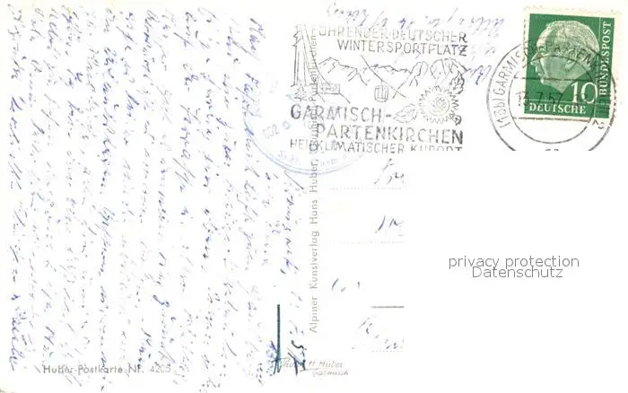 Kreuzeckhaus mit Alpspitze Zugspitze und Waxenstein Kreuzeckhaus postalisch gelaufen 1957 Erhaltung siehe scans [WerneD78] WernPID7