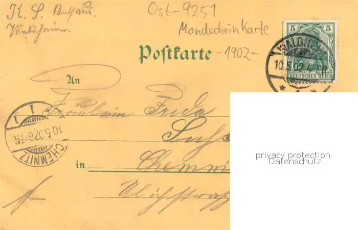 Kriebstein Schloss Kriebstein Mondschein-Karte Kriebstein postalisch gelaufen 1902 Erhaltung siehe scans [LiesaD40] LiesID40