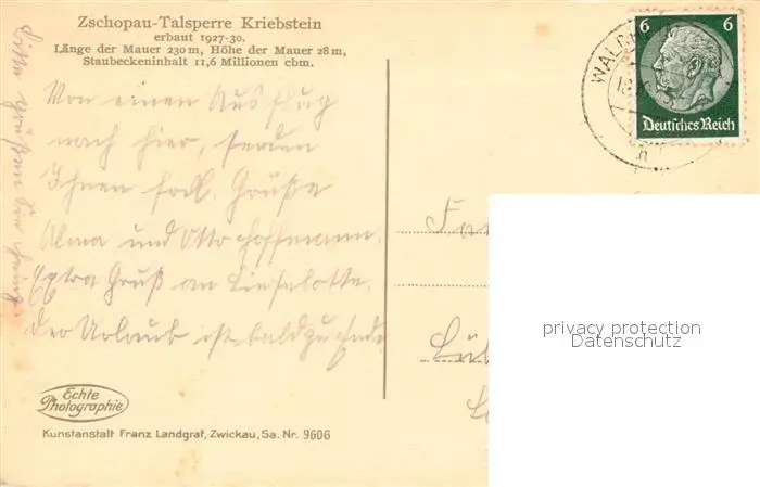 Kriebstein Zschopau Talsperre Kriebstein postalisch gelaufen 1935 Erhaltung siehe scans [FriedD77] Frierer