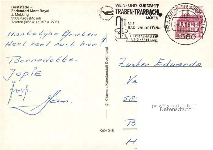 Kroev_Mosel AEGON Feriendorf Mont Royal Details Kroev_Mosel postalisch gelaufen 1985 Erhaltung siehe scans [WerneD78] WernPID7