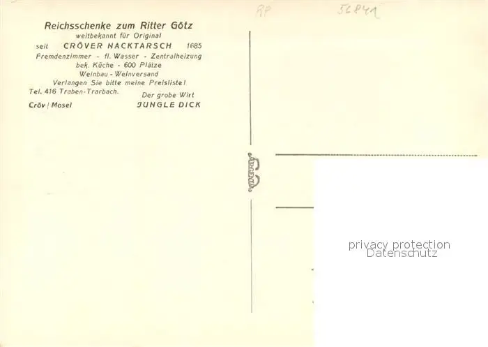 Kroev_Mosel Kategorie Alte Ansichtskarten Postkarten bx93207 Kroev_Mosel Reichsschenke zum Ritter Goetz Gastraeume Kroev_Mosel postalisch nicht gelaufen Erhaltung siehe scans [WerneD78]