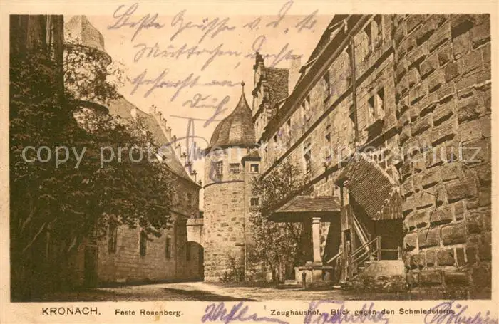 Kronach_Oberfranken Feste Rosenberg Zeughaushof Schmiedeturm Kronach Oberfranken postalisch gelaufen 1931 Erhaltung siehe scans [FriedD77] Frierer