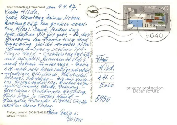 Kronach_Oberfranken Fliegeraufnahme Kronach Oberfranken postalisch gelaufen 1987 Erhaltung siehe scans [FriedD77] Frierer