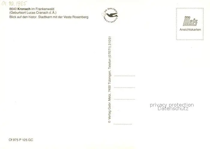 Kronach_Oberfranken Historischer Stadtkern mit Veste Rosenberg Partie am Fluss Kronach Oberfranken postalisch nicht gelaufen 1985 Erhaltung siehe scans [FriedD77] Frierer