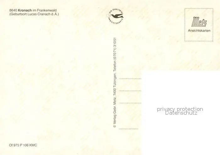 Kronach_Oberfranken Stadtpanorama Veste Rosenberg Festungstor Stadtpark Hexenturm Rathaus Martinsbrunnen Bergfried Kronach Oberfranken postalisch nicht gelaufen nach 1965 Erhaltung siehe scans [FriedD77] Frierer