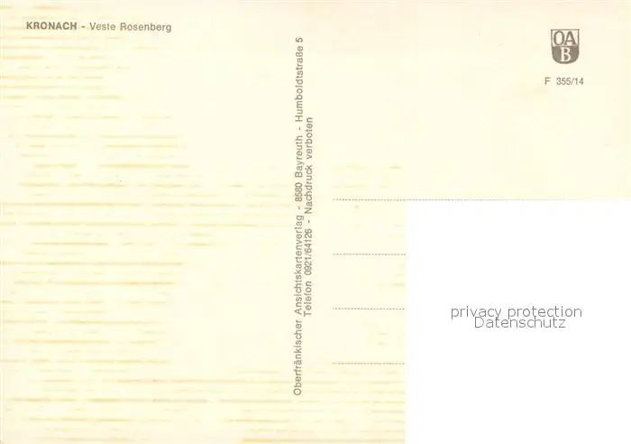 Kronach_Oberfranken Veste Rosenberg Fliegeraufnahme Kronach Oberfranken postalisch nicht gelaufen nach 1965 Erhaltung siehe scans [WerneD78] WernPID7