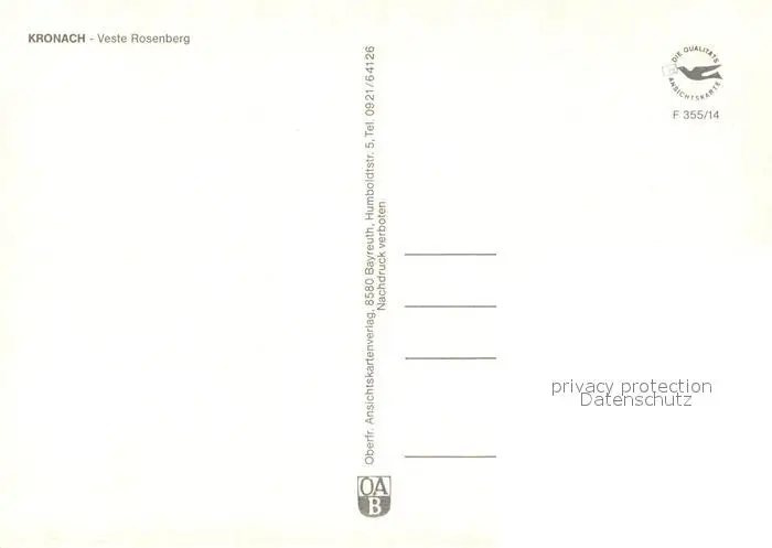 Kronach_Oberfranken Veste Rosenberg Fliegeraufnahme Kronach Oberfranken postalisch nicht gelaufen nach 1965 Erhaltung siehe scans [PaolaD17] PaolPID1