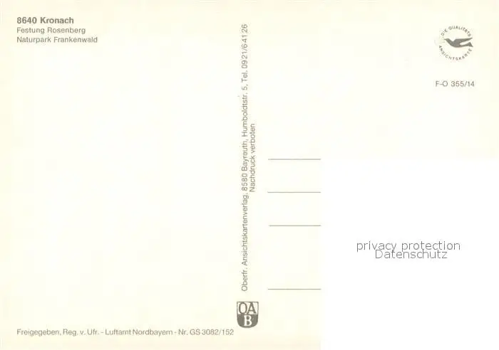 Kronach_Oberfranken Veste Rosenberg Fliegeraufnahme Kronach Oberfranken postalisch nicht gelaufen nach 1965 Erhaltung siehe scans [PaolaD17] PaolPID1