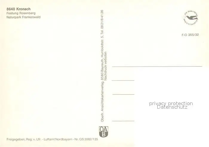 Kronach_Oberfranken Veste Rosenberg Naturpark Frankenwald Fliegeraufnahme Kronach Oberfranken postalisch nicht gelaufen nach 1965 Erhaltung siehe scans [FriedD77] Frierer