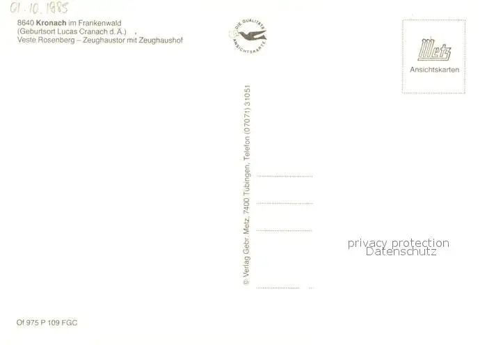 Kronach_Oberfranken Veste Rosenberg Zeughaustor Zeughaushof Kronach Oberfranken postalisch nicht gelaufen 1985 Erhaltung siehe scans [FriedD77] Frierer