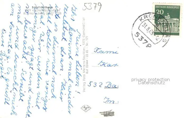 Kronenburg_Eifel Schullandheim Kronenburg Eifel postalisch gelaufen 1969 Erhaltung siehe scans [WerneD78] WernPID7