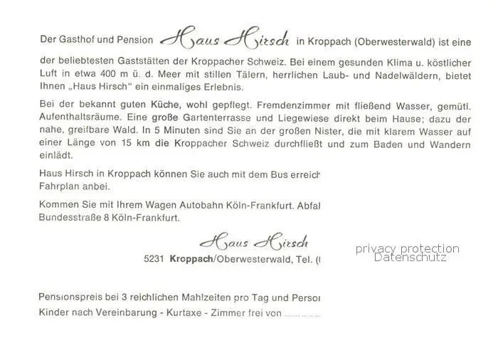 Kroppach Gasthof Pension Hirsch Gaststube Theke Panorama Kroppach postalisch nicht gelaufen nach 1965 Werbekarte (keine Postkarte) Erhaltung siehe scans [WerneD78] Werbekarte (keine Postkarte) WernPID7