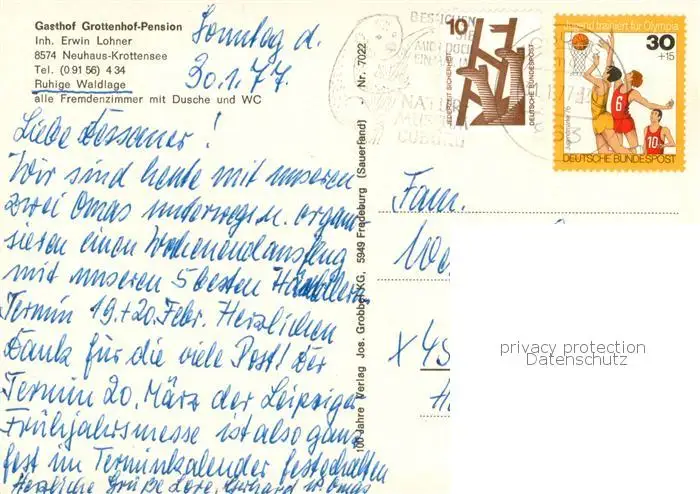 Krottensee Gasthof Pension Grottenhof Krottensee postalisch gelaufen 1977 Erhaltung siehe scans [FriedD77] Frierer