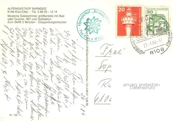 Kruen Alpengasthof Barmsee Kruen postalisch gelaufen 1984 Erhaltung siehe scans [WerneD78] WernPID7