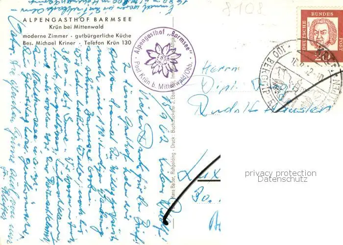 Kruen Alpengasthof Barmsee Kruen postalisch gelaufen nach 1965 Erhaltung siehe scans [FriedD77] Frierer