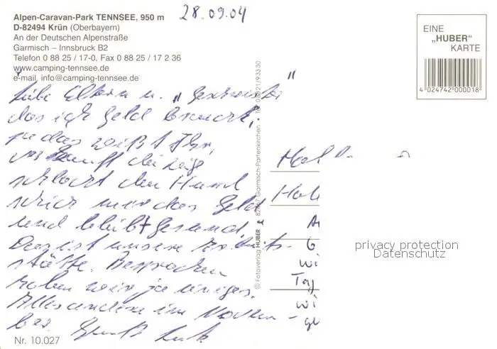 Kruen Caravanpark Tennsee Restaurant Terrasse Campingplatz Alpenblick Huber Karte Nr. 10.027 Kruen postalisch nicht gelaufen 2004 Erhaltung siehe scans [FriedD77] Frierer