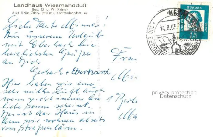 Kruen Landhaus Wiesmahdduft Kruen postalisch gelaufen 1963 Erhaltung siehe scans [WerneD78] WernPID7