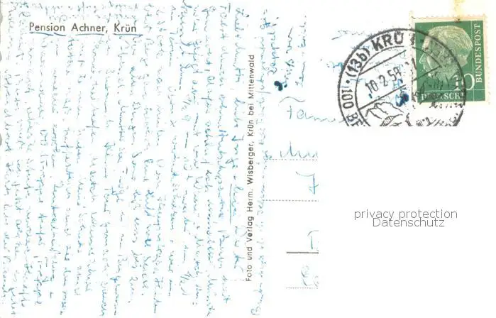 Kruen Pension Achner Kruen postalisch gelaufen 1958 Erhaltung siehe scans [FriedD77] Frierer