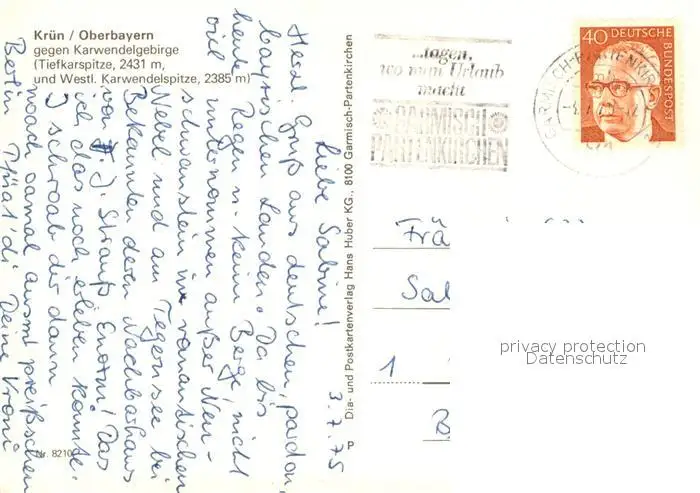 Kruen mit Tiefkarspitze und Karwendelspitze Kruen postalisch gelaufen 1975 Erhaltung siehe scans [WerneD78] WernPID7