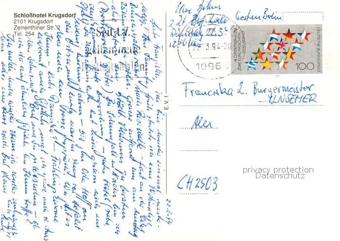 Krugsdorf Schlosshotel Krugsdorf Krugsdorf postalisch gelaufen 1994 Erhaltung siehe scans [FriedD77] Frierer
