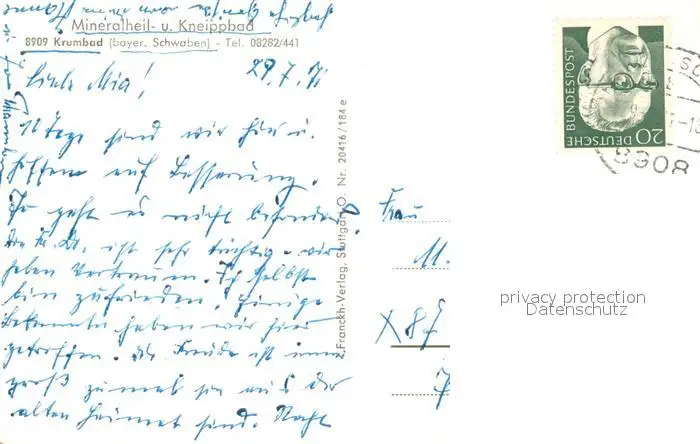 Krumbad Mineral Heil- und Kneippbad Krumbad postalisch gelaufen 1971 Erhaltung siehe scans [WerneD78] WernPID7