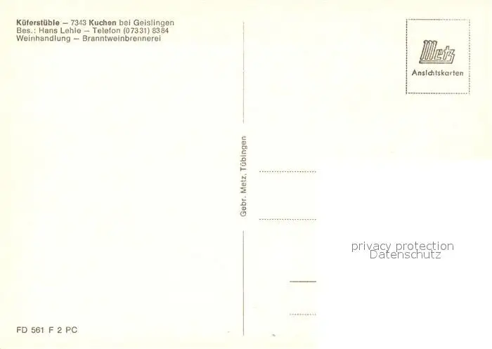 Kuchen_Fils K?ferst?ble Kuchen Fils postalisch nicht gelaufen nach 1965 Erhaltung siehe scans [PaolaD17] PaolPID1