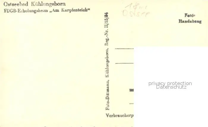 Kuehlungsborn_Ostseebad FDGB Erholungsheim Am Karpfenteich Handabzug Kuehlungsborn_Ostseebad postalisch nicht gelaufen 1921-1965 Erhaltung siehe scans [FriedD77] Frierer