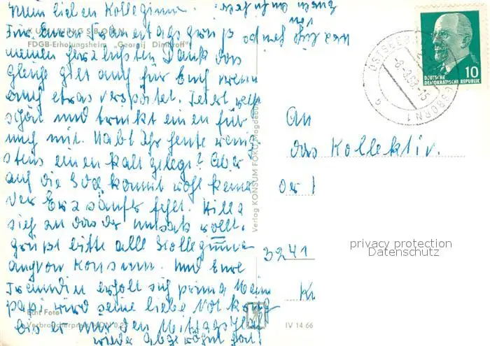 Kuehlungsborn_Ostseebad FDGB Erholungsheim Georgii Dimitroff Kuehlungsborn_Ostseebad postalisch gelaufen 1968 Erhaltung siehe scans [FriedD77] Frierer
