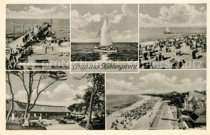 Kuehlungsborn_Ostseebad Strand Seebruecke Segelboot Promenade Restaurant Kuehlungsborn_Ostseebad postalisch nicht gelaufen 1959 Erhaltung siehe scans [FriedD77] Frierer