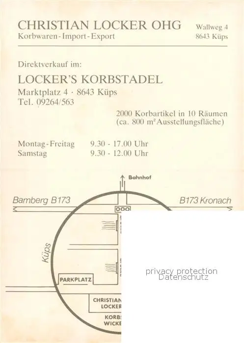 Kueps Christian Locker OHG Korbwaren Details Kueps postalisch nicht gelaufen nach 1965 Werbekarte (keine Postkarte) Erhaltung siehe scans [WerneD78] Werbekarte (keine Postkarte) WernPID7
