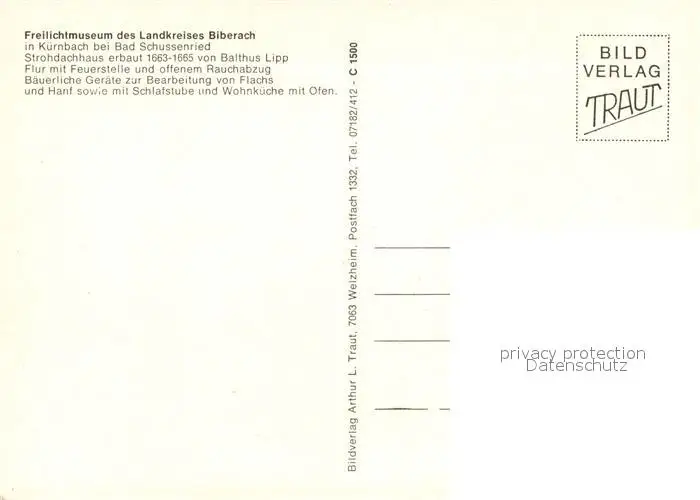 Kuernbach_Wuerttemberg Freilichtmuseum Strohdachhaus 17. Jhdt. Innenansichten Kuernbach Wuerttemberg postalisch nicht gelaufen nach 1965 Erhaltung siehe scans [FriedD77] Frierer