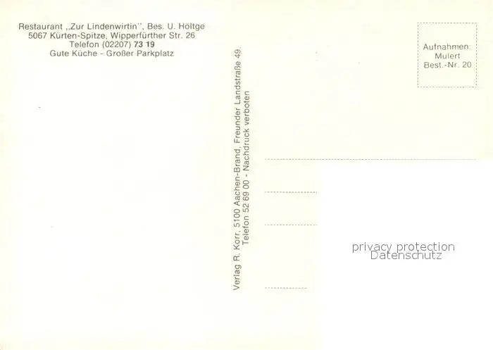 Kuerten Restaurant Zur Lindenwirtin Gastraeume Panorama Kuerten postalisch nicht gelaufen nach 1965 Erhaltung siehe scans [WerneD78] WernPID7