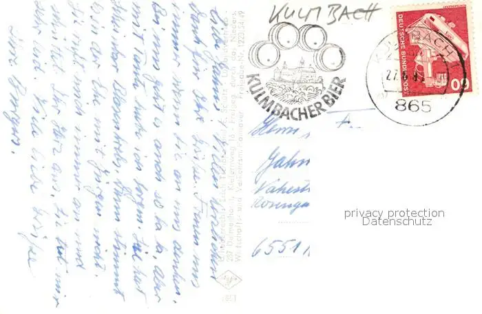 Kulmbach Kategorie Alte Ansichtskarten Postkarten bx87577 Kulmbach Fliegeraufnahme Bier Kulmbach postalisch gelaufen nach 1965 Erhaltung siehe scans [LiesaD40]