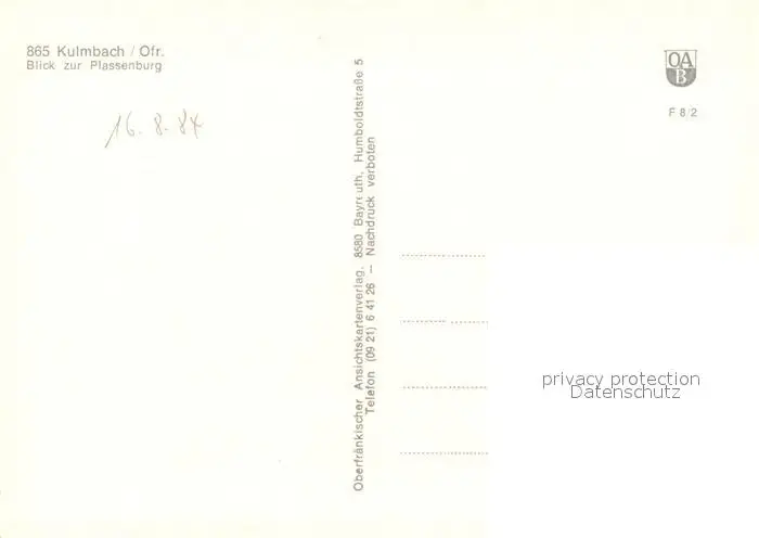 Kulmbach Plassenburg Kulmbach postalisch nicht gelaufen 1984 Erhaltung siehe scans [KathaD81] Kathoren