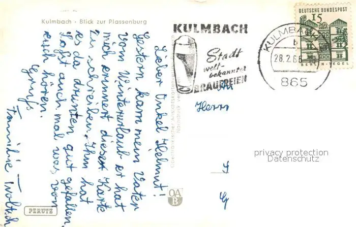 Kulmbach Plassenburg Kulmbach postalisch gelaufen 1966 Erhaltung siehe scans [KathaD81] Kathoren