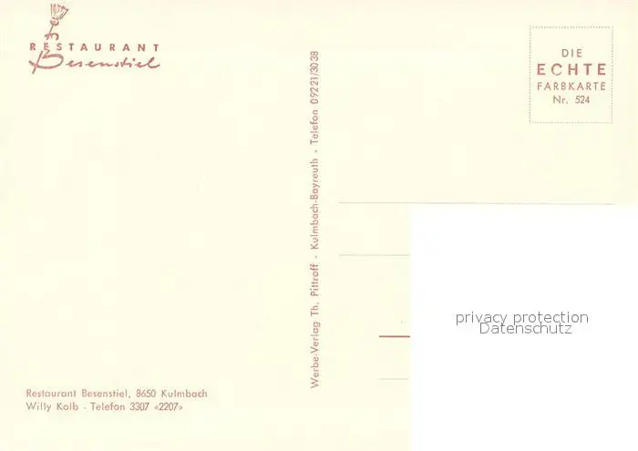 Kulmbach Restaurant Besenstiel Kulmbach postalisch nicht gelaufen nach 1965 Erhaltung siehe scans [FriedD77] Frierer