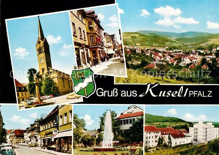 AK / Ansichtskarte Kusel Panorama Kirche Hutmacherbrunnen Trierer Strasse Rosengarten Kusel