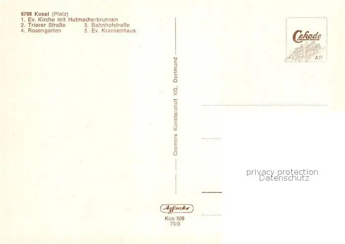 Kusel Panorama Kirche Hutmacherbrunnen Trierer Strasse Rosengarten Kusel postalisch nicht gelaufen nach 1965 Erhaltung siehe scans [KathaD81] Kathoren