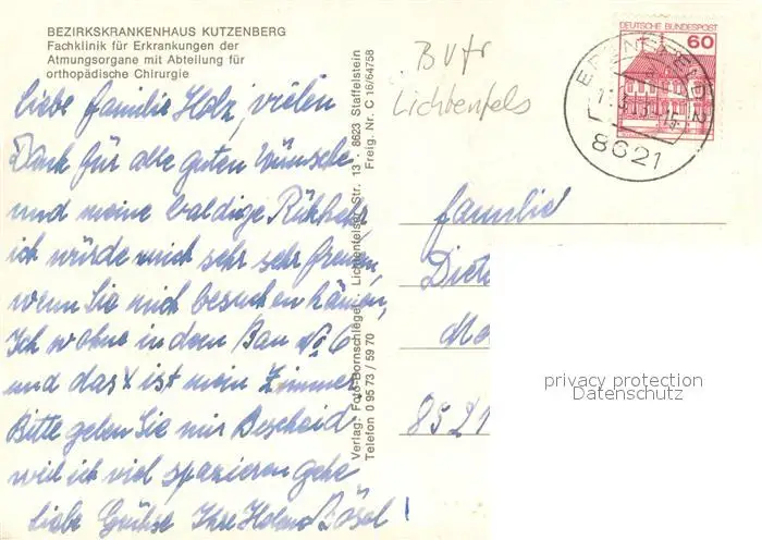 Kutzenberg Bezirkskrankenhaus Fliegeraufnahme Kutzenberg postalisch gelaufen ca. 1980 Erhaltung siehe scans [FriedD77] Frierer