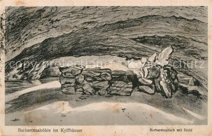 Kyffhaeuser Barbarossahoehle Barbarossatisch mit Stuhl Kyffhaeuser postalisch gelaufen 1920 Erhaltung siehe scans [WerneD78] WernPID7