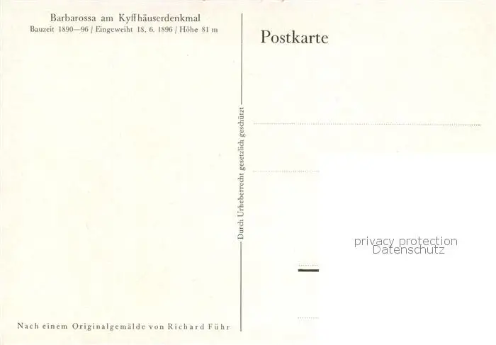 Kyffhaeuserdenkmal Barbarossa am Kyffhaeuserdenkmal Kuenstlerkarte R. Fuehr Kyffhaeuserdenkmal postalisch nicht gelaufen nach 1965 Erhaltung siehe scans [LiesaD40] LiesID40