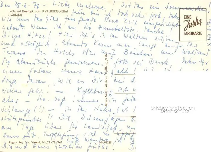 Kyllburg_Rheinland-Pfalz Luft- und Kneippkurort Fliegeraufnahme Kyllburg_Rheinland-Pfalz postalisch nicht gelaufen 1976 Erhaltung siehe scans [FriedD77] Frierer