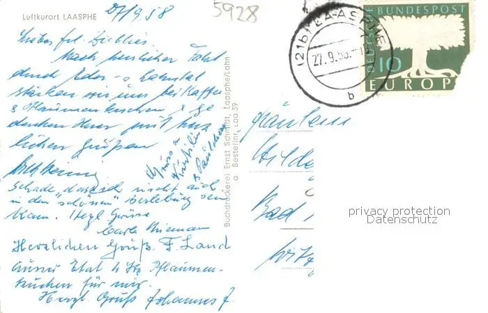 Laasphe Panorama Luftkurort Laasphe postalisch gelaufen 1958 Erhaltung siehe scans [FriedD77] Frierer
