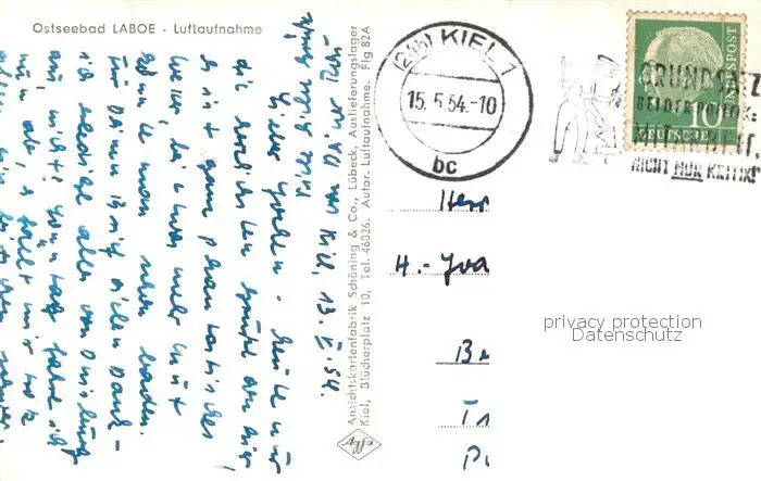 Laboe Fliegeraufnahme mit Marine Ehrenmal Laboe postalisch gelaufen 1954 Erhaltung siehe scans [FriedD77] Frierer