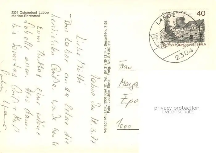 Laboe Marine Ehrenmal Strand Fliegeraufnahme Laboe postalisch gelaufen 1977 Erhaltung siehe scans [FriedD77] Frierer