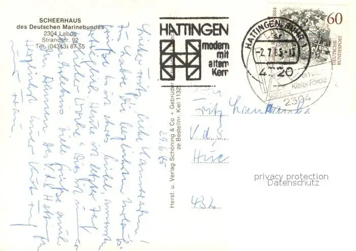 Laboe Scheerhaus des Deutschen Marinebundes Gastraeume Laboe postalisch gelaufen 1985 Erhaltung siehe scans [WerneD78] WernPID7